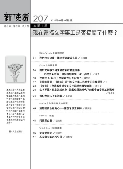 《新使者》雜誌第207期 _現在還搞文字事工是否搞錯了什麼?